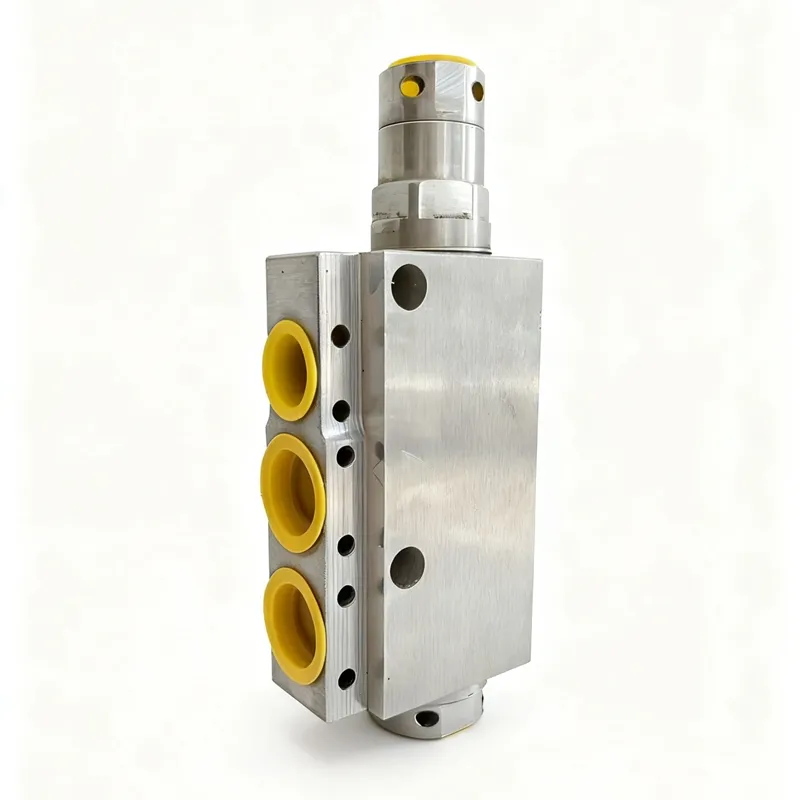Данный клапан устанавливается на перестановочном домкрате гидравлической крепи, управляет открытием и блокировкой поршневой полости перестановочного домкрата. Его особенностью является больший диаметр канала возврата жидкости при обратной перестановке, что обеспечивает высокую скорость возврата жидкости.